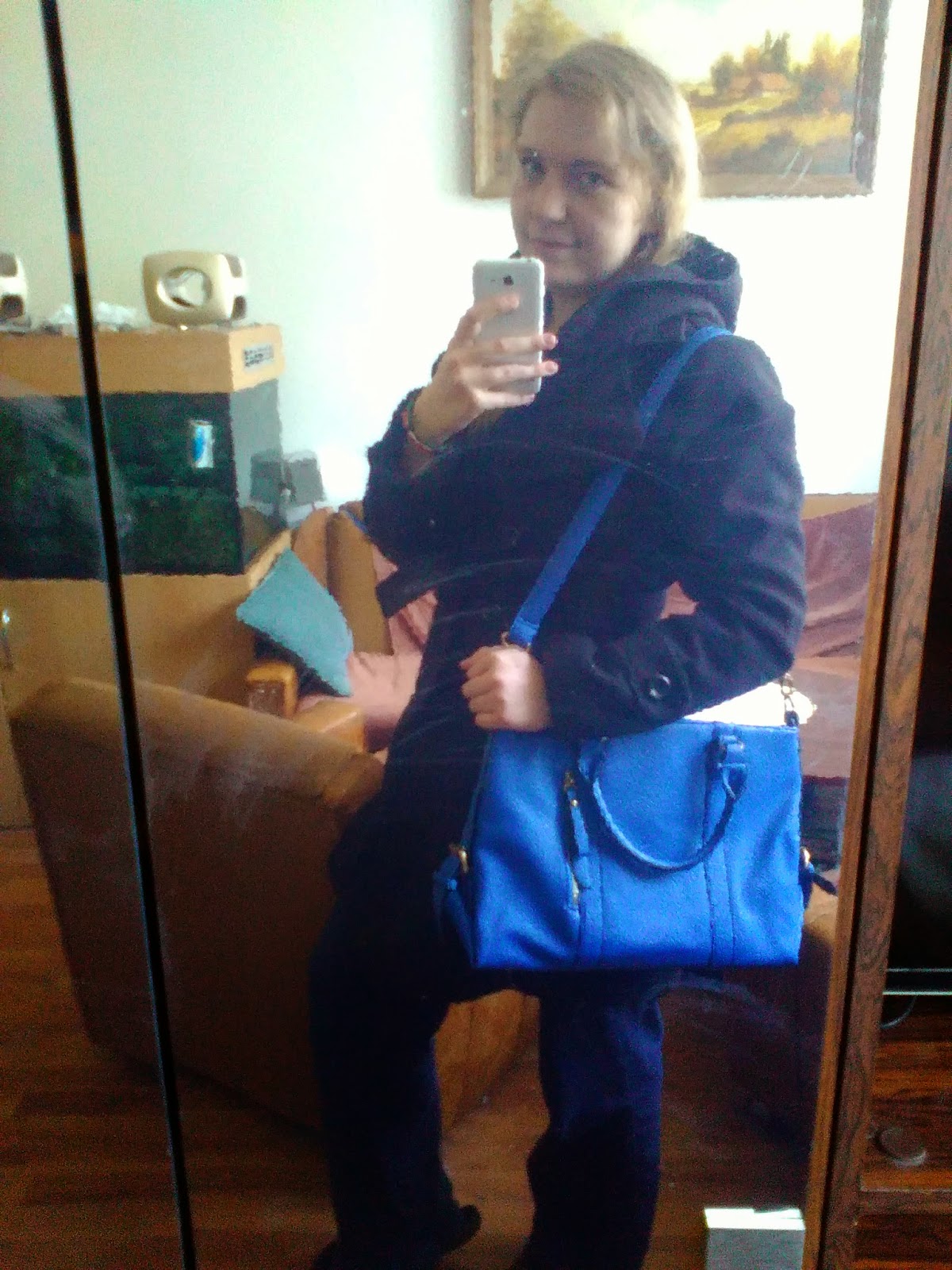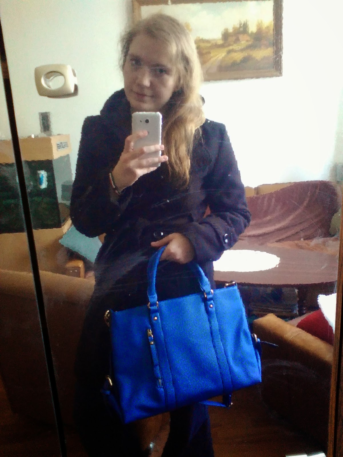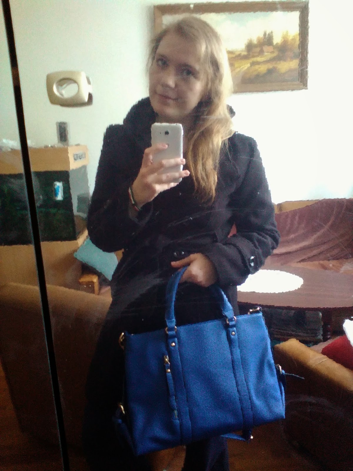 Už dlhšie som rozmýšľala nad kúpou sýto modrej kabelky, nakoľko mám v skrini dosť veľa modrých vecí a zároveň farebná kabelka oživí celkoý outfit. Hlavne vtedy, ak máte dlhý zimný kabát čiernej farby.