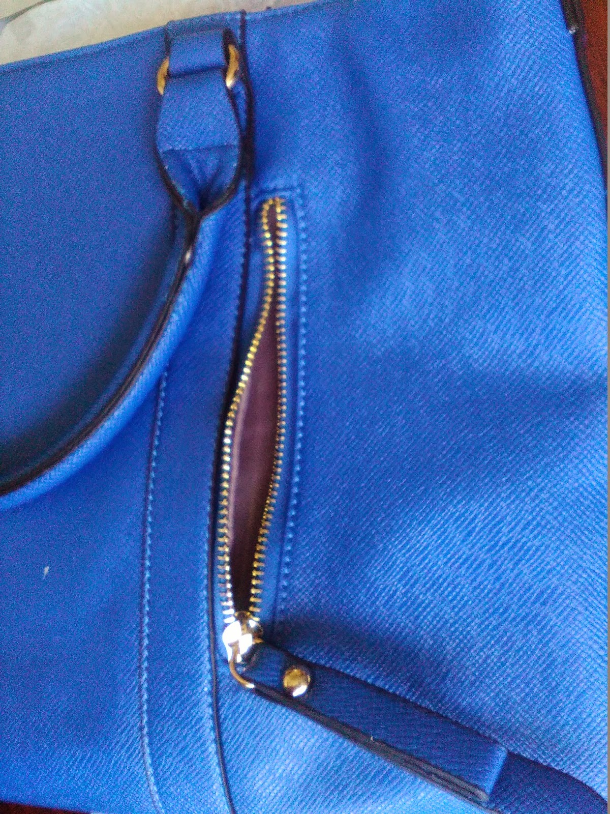 Táto kriklavo-modrá kabelka rozhodne pritiahne pozornosť. Je vyrobená z kvalitného materiálu, takže kabelka pôsobí luxusne. Bočné ozdoby v podobe opasku dodávajú kabelke nevšednosť. Jemné pásy ktoré vychádzajú z rukovätí dodávajú kabelke šmrnc, rovnako ako aj predný zips.